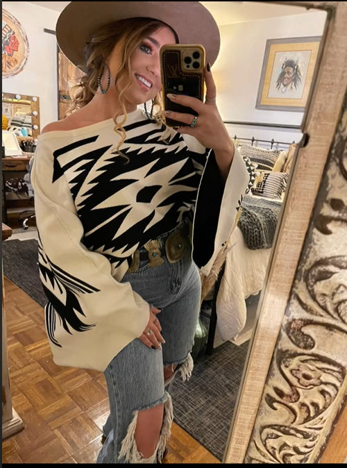 Color Block Cowboy Crew Neck Sweatshirt -